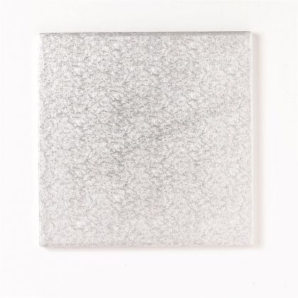 Sometimes referred to as a Cake Drum, this is the strongest type of Cake Board. It has a bonded fibre board inner which is covered on the top and sides with a fern textured, silver coloured foil and with white paper on the base. The finished Cake Board is 0.5'' (12mm) thick, with a 8'' (200mm) square top. These Cake Boards are supplied shrink wrapped in 5s, the Cake Boards are not individually wrapped.