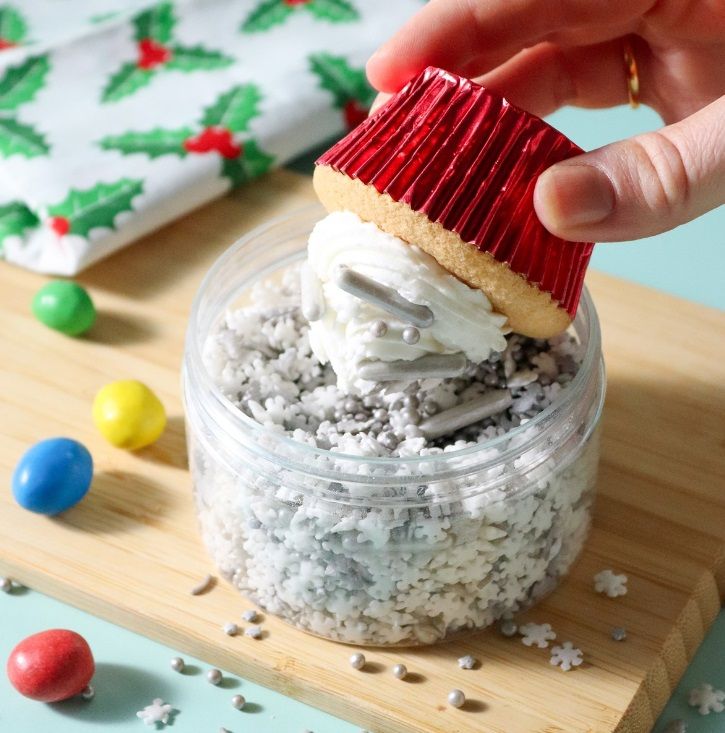Състав: Захар, декстроза, царевично нишесте, палмово масло, малтодекстрин, глюкоза, модифицирано нишесте, сгъстители (E414, E415), глазиращи агенти (E904, E903), ароматизант, антислепващ агент (E470b), оцветители (E172, E174, E153), емулгатор (E322 (соя)).